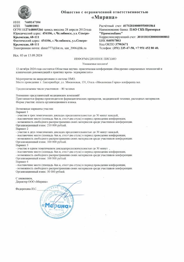 Информационное письмо 12 октября 2024 года