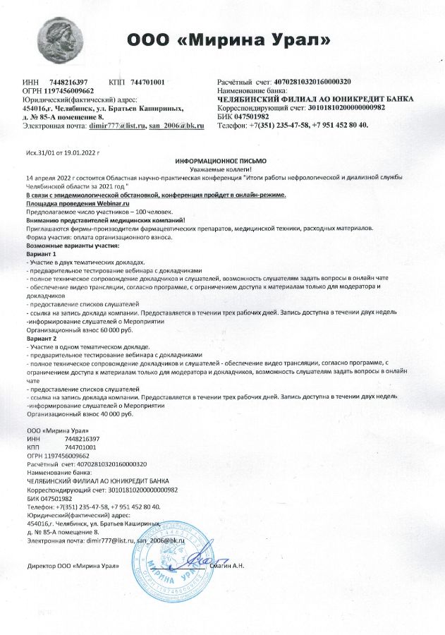 Информационное письмо 14 апреля 2022 года