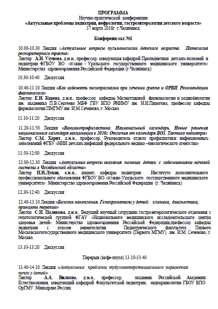 Научно-практическая конференция «Актуальные проблемы педиатрии, нефрологии и гастроэнтерологии детского возраста». Дата провкдения 17 марта 2018 г. Место проведения: г. Челябинск ул. Чапаева 118, Конференц-зал отеля «Берёзка»