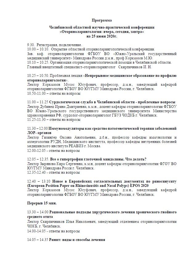 Челябинская областная научно-практическая конференция «Оториноларингология: вчера, сегодня, завтра». |