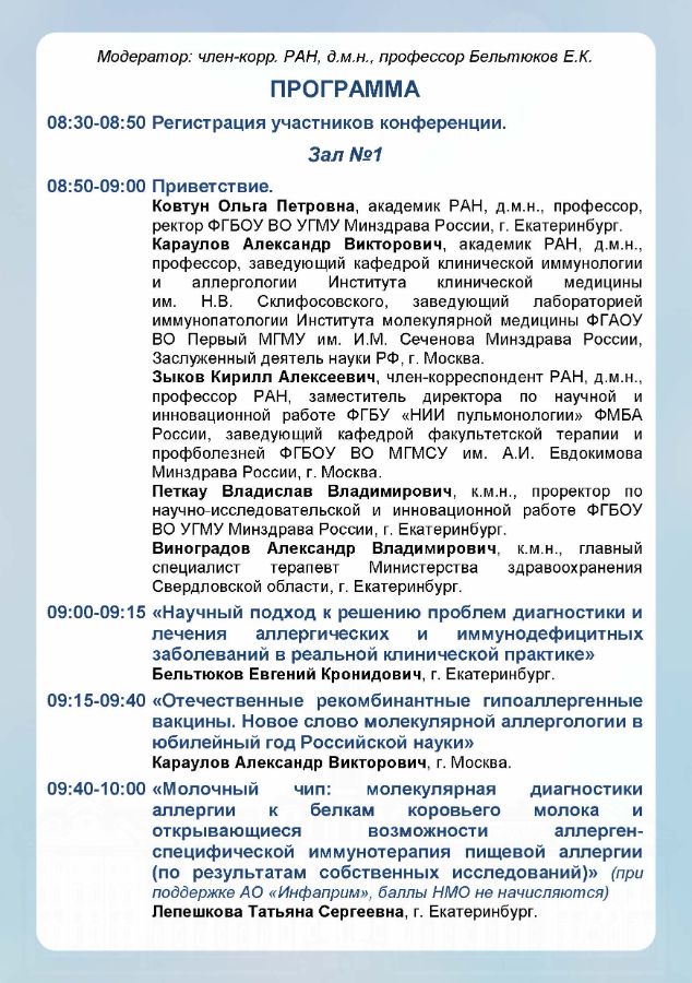 Девятая межрегиональная научно-практическая конференция Уральского федерального округа «Аллергология и иммунология на Урале в юбилейный год Российской науки» |