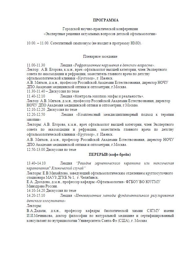 Городская научно-практическая конференция «Экспертные решения актуальных вопросов детской офтальмологии» |