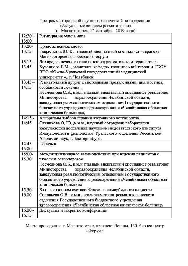 Городская научно-практическая конференция «Актуальные вопросы ревматологии»
