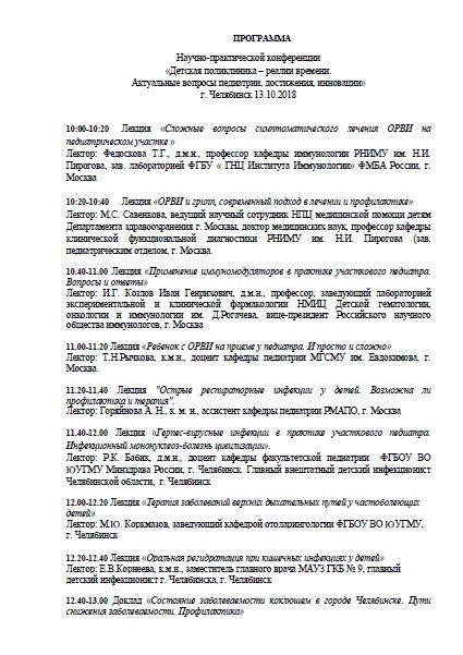 Научно-практическая конференция «Детская поликлиника - реалии времени. Актуальные вопросы педиатрии, достижения, инновации» Дата проведения: 13 октября 2018 года Место проведения: г. Челябинск, ул. Лесопарковая, 6. Парк-Сити.