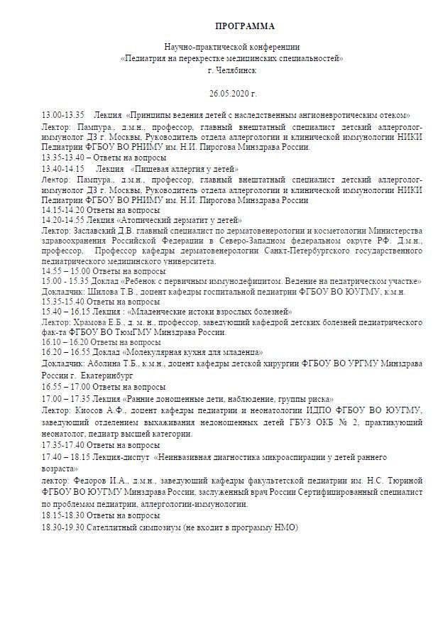 Научно-практической конференции «Педиатрия на перекрестке медицинских специальностей» |