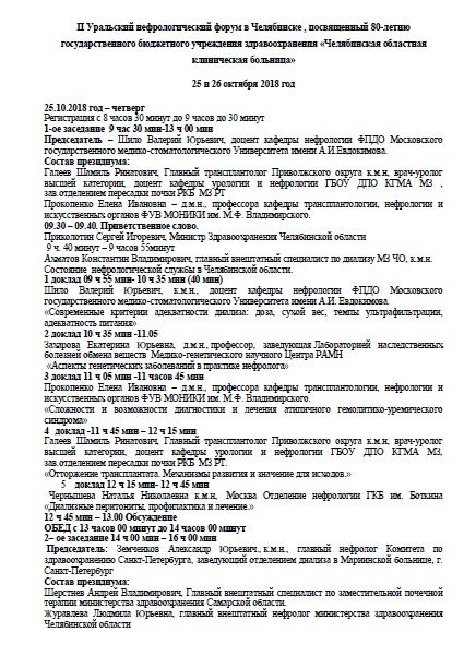 II Уральский нефрологический форум в Челябинске , посвященный 80-летию государственного бюджетного учреждения здравоохранения «Челябинская областная клиническая больница» |