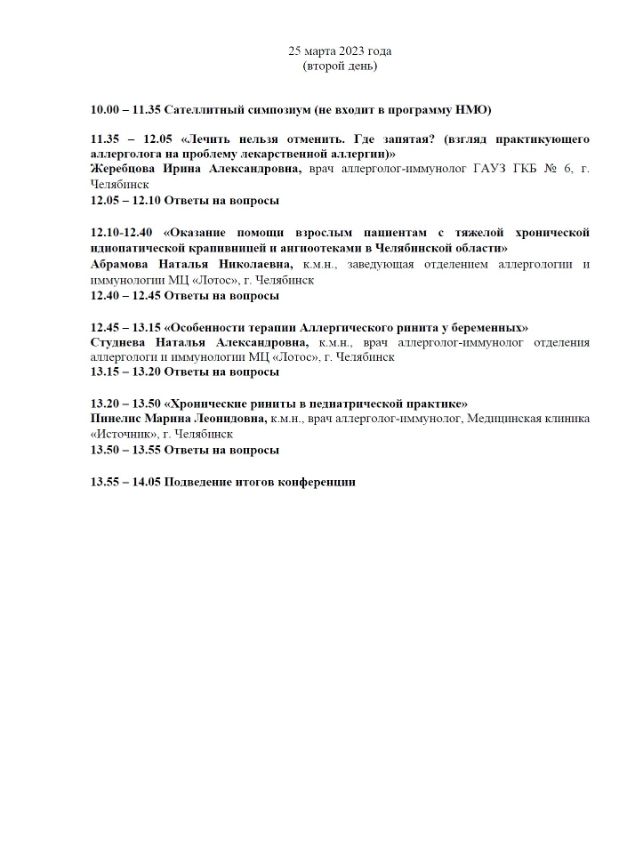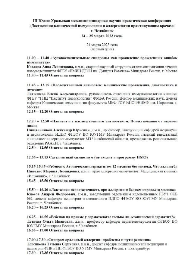 III Южно-Уральская междисциплинарная научно-практическая конференция «Достижения клинической иммунологии и аллергологии практикующим врачам» |