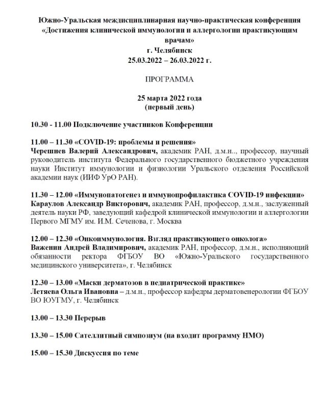 Южно-Уральская междисциплинарная научно-практическая конференция «Достижения клинической иммунологии и аллергологии практикующим врачам» |