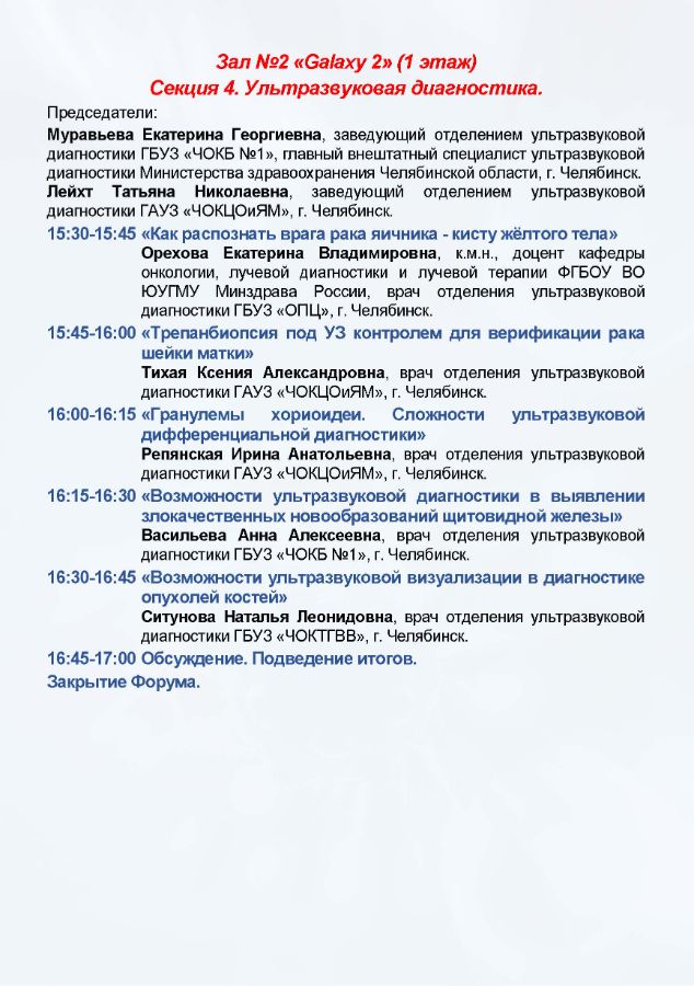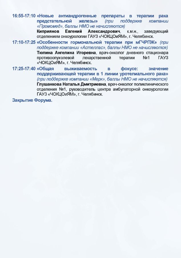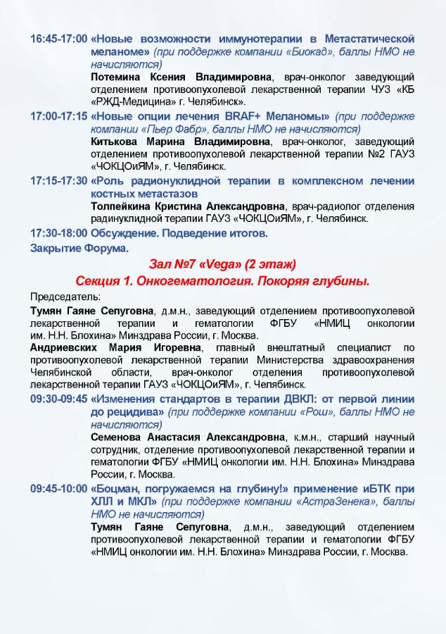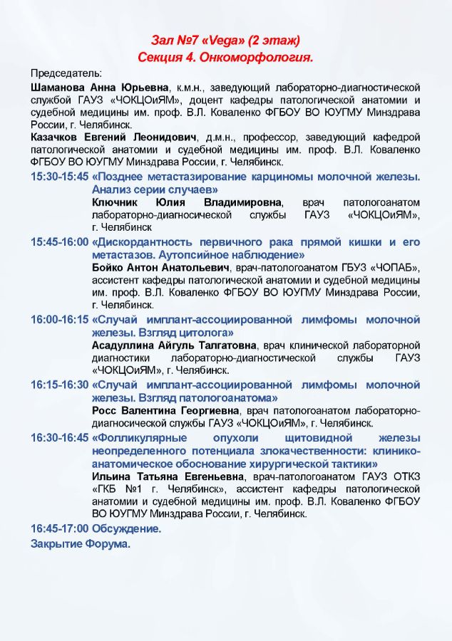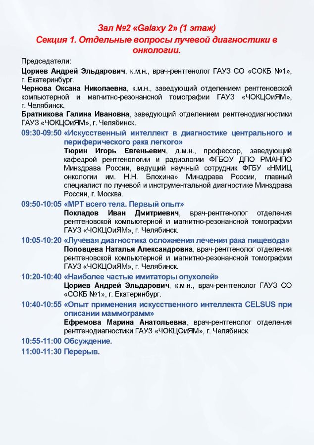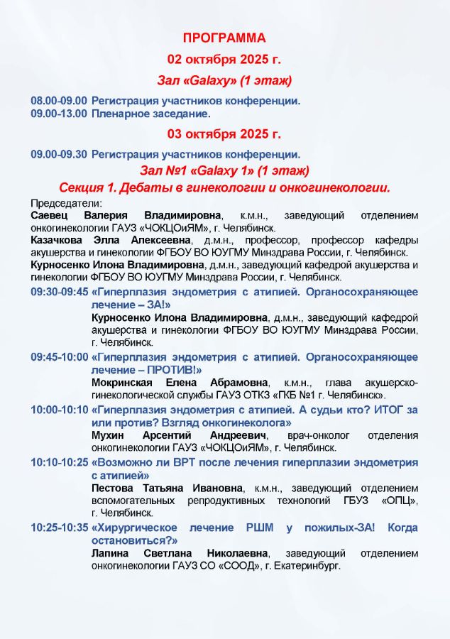 IV Форум онкологов и специалистов лучевой и инструментальной диагностики УрФО Дата проведения: 2-3 октября 2025 г. Место проведения: г. Челябинск, ул. Труда, 179, конференц-зал отеля «Redisson Blu Hotel Chelyabinsk»