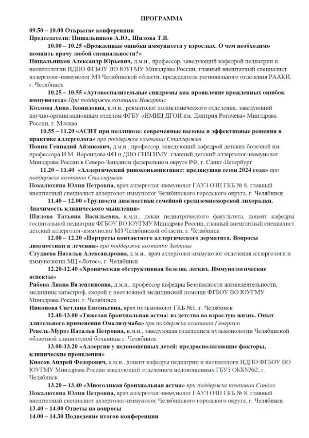 IV Южно-Уральская междисциплинарная научно-практическая конференция «Достижения клинической иммунологии и аллергологии практикующим врачам» |