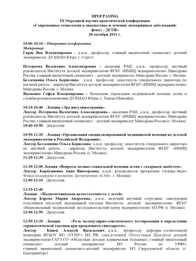 IX Окружная научно-практическая конференция «Современные технологии в диагностике и лечении эндокринных заболеваний: фокус - дети» |