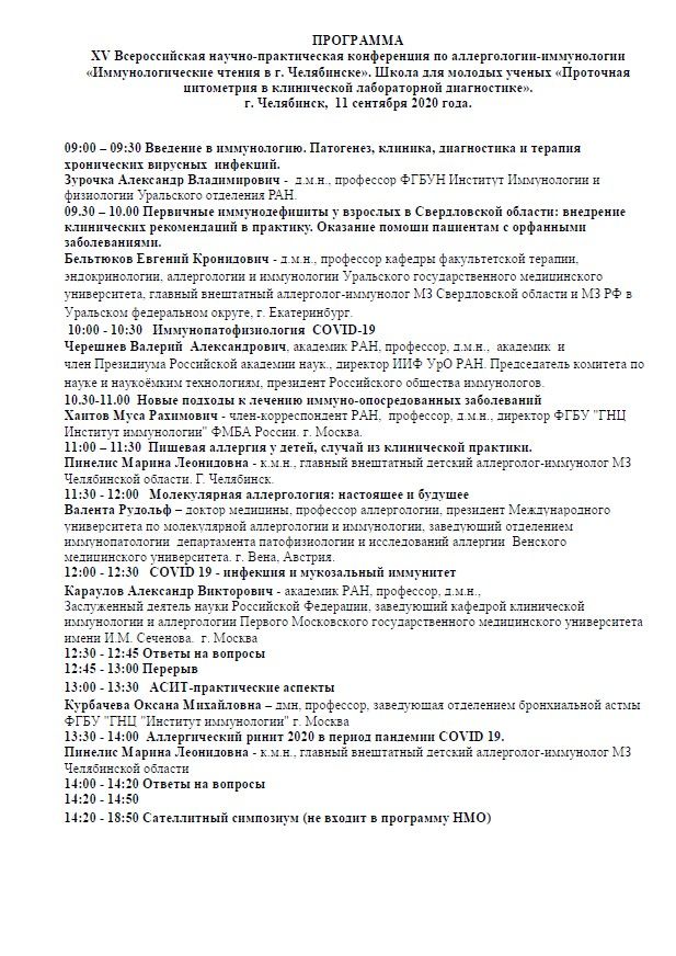 ХV Всероссийская научно-практическая конференция по аллергологии-иммунологии «Иммунологические чтения в г. Челябинске». Школа для молодых ученых «Проточная цитометрия в клинической лабораторной диагностике». |