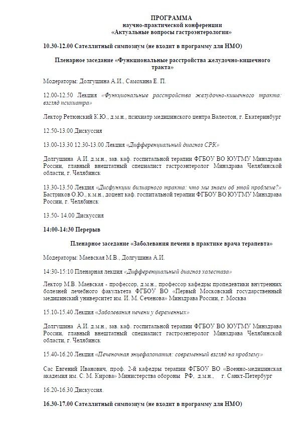 Научно-практическая конференция «Актуальные вопросы гастроэнтерологии» Место проведения: г. Челябинск, пр. Ленина, 26А, отель Видгоф Дата проведения: 5 декабря 2019 г. Сателлитный симпозиум (не входит в программу для НМО)