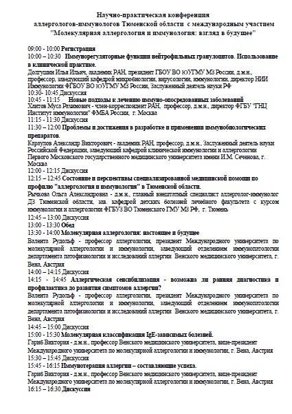 Научно-практическая конференция аллергологов-иммунологов Тюменской области с международным участием "Молекулярная аллергология и иммунология: взгляд в будущее" |