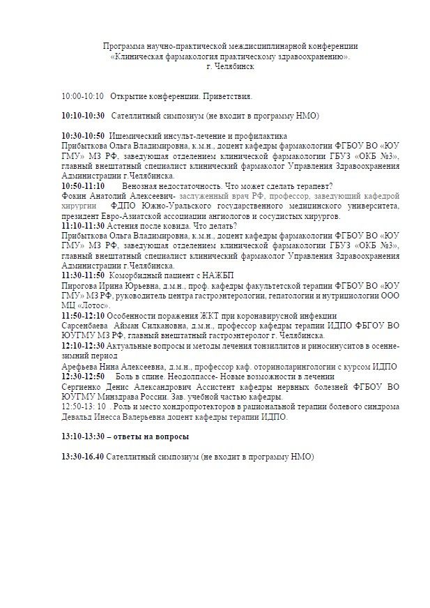 Научно-практическая конференция «Клиническая фармакология практическому здравоохранению» г. Челябинск |