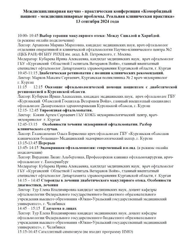 Междисциплинарная научно - практическая конференция «Коморбидный пациент - междисциплинарные проблемы. Реальная клиническая практика» |