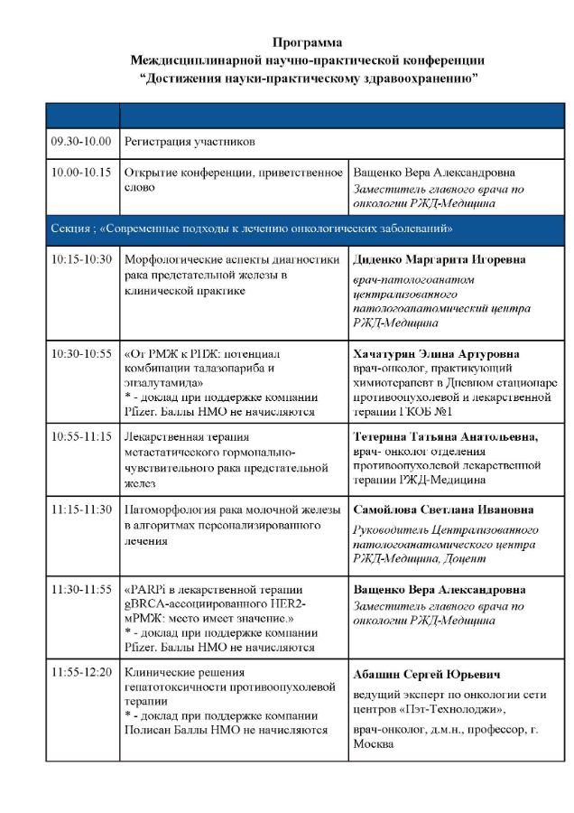 Междисциплинарная научно-практическая конференция “Достижения науки-практическому здравоохранению” Дата проведения: 21.03.2026 Место проведения: г. Москва, ул. Часовая, д. 20 Онлайн трансляция: https://cdzrzd.ktalk.ru/d1i2v181pv56