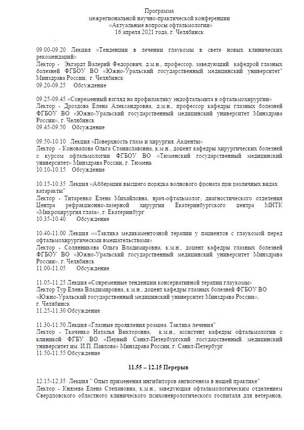 Межрегиональная научно-практическая конференция «Актуальные вопросы офтальмологии» |