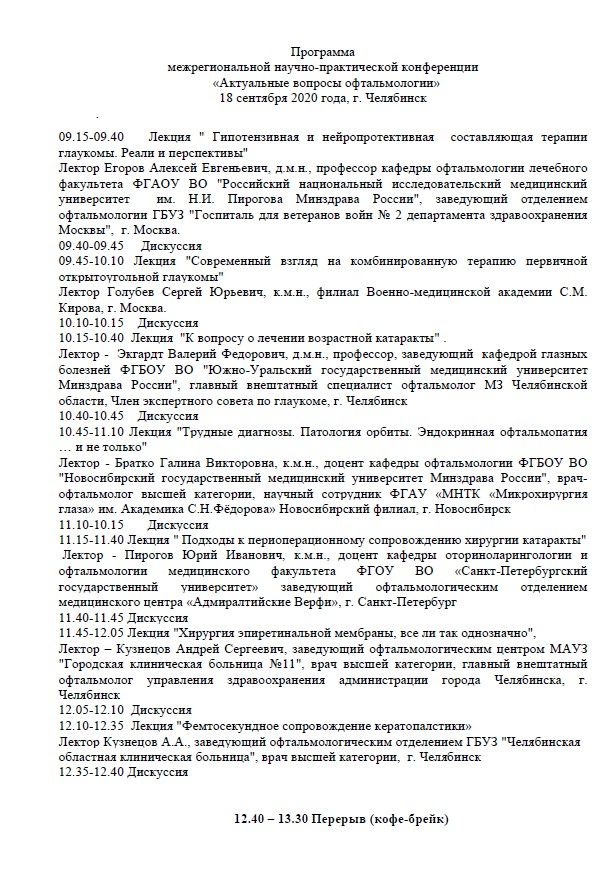 Межрегиональная научно-практическая конференция «Актуальные вопросы офтальмологии» |