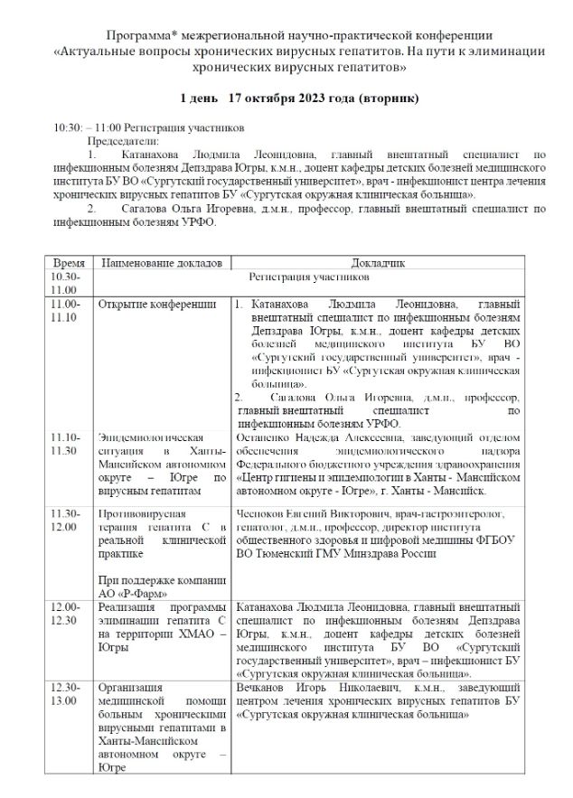 Межрегиональная научно-практическая конференция «Актуальные вопросы хронических вирусных гепатитов. На пути к элиминации хронических вирусных гепатитов» |
