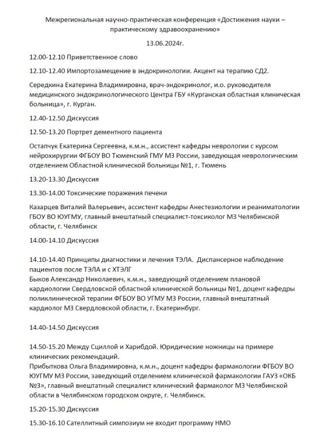 Межрегиональная научно-практическая конференция «Достижения науки – практическому здравоохранению» |