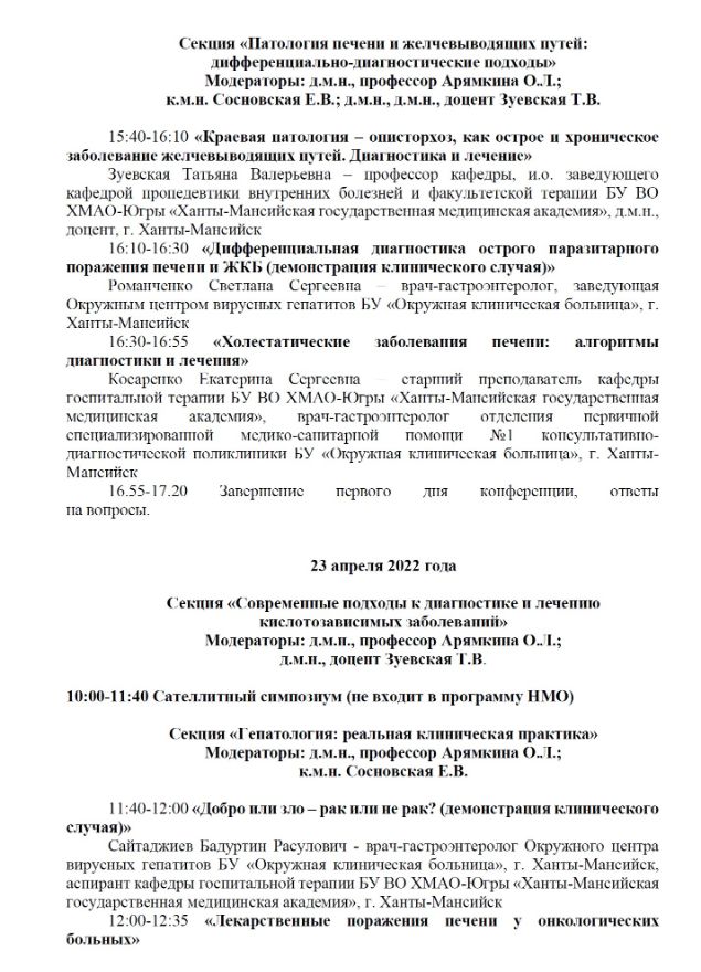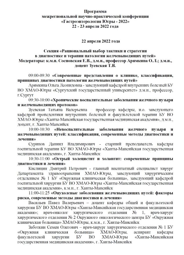 Межрегиональная научно-практическая конференция «Гастроэнтерология Югры - 2022» |