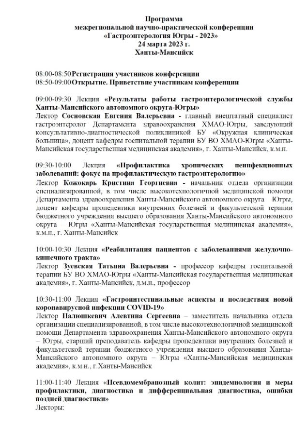 Межрегиональная научно-практическая конференция «Гастроэнтерология Югры - 2023» |
