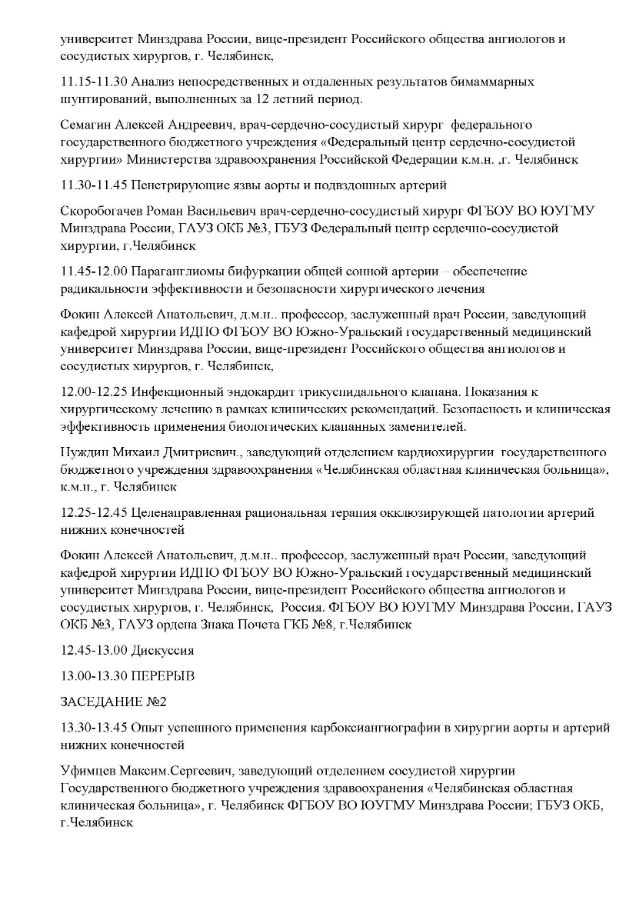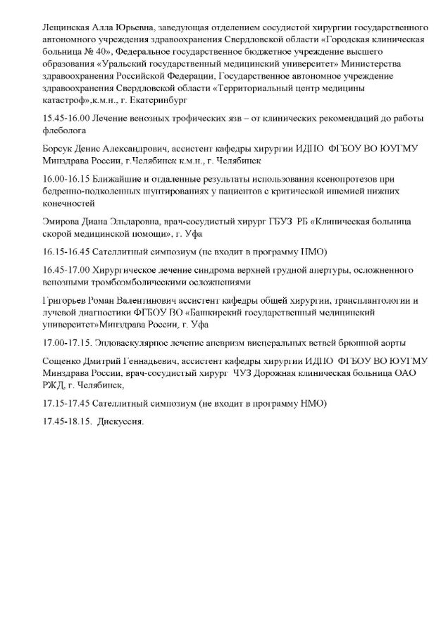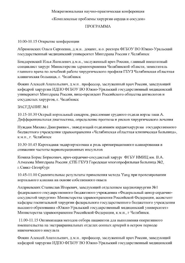 Межрегиональная научно-практическая конференция «Комплексные проблемы хирургии сердца и сосудов» Дата проведения: 13 ноября 2025 г. Место проведения: г. Челябинск, ул. Лесопарковая, 6, отель «ПаркСити» Сателлитный симпозиум (не входит в программу НМО)