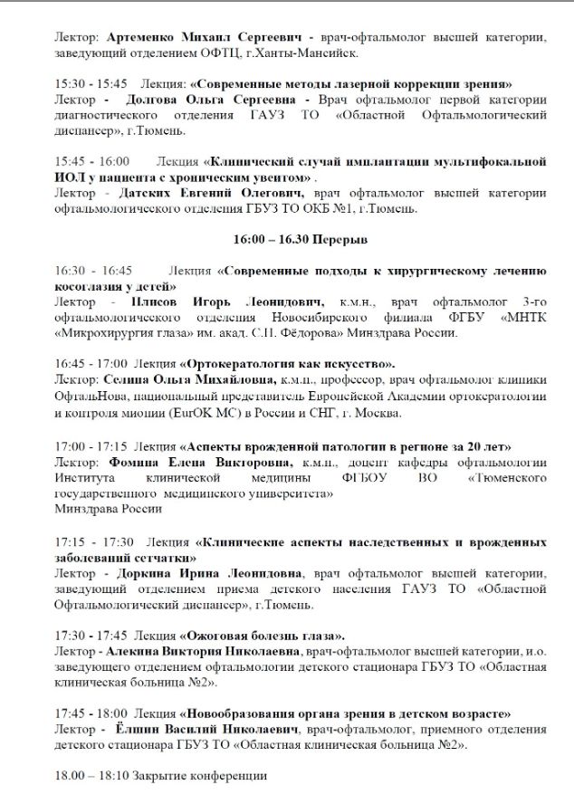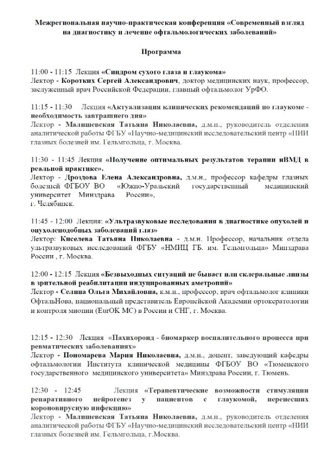 Межрегиональная научно-практическая конференция «Современный взгляд на диагностику и лечение офтальмологических заболеваний» |