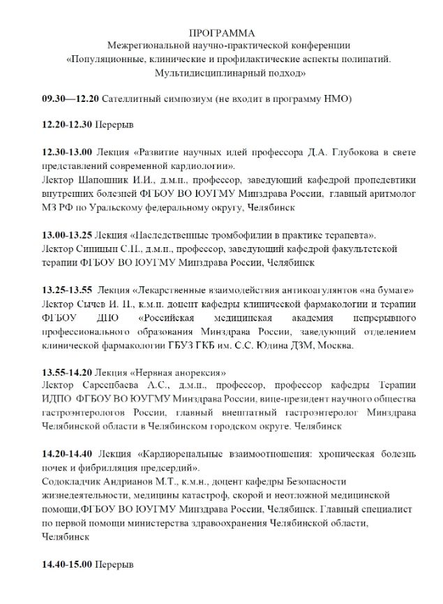 Межрегиональная научно-практическая конференция «Популяционные, клинические и профилактические аспекты полипатий. Мультидисциплинарный подход» |