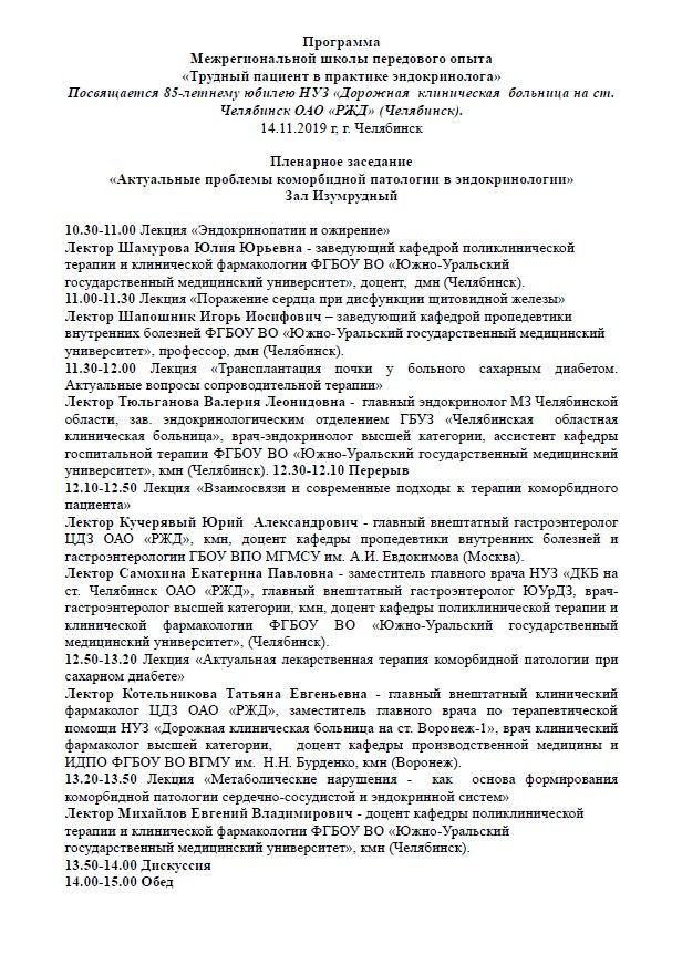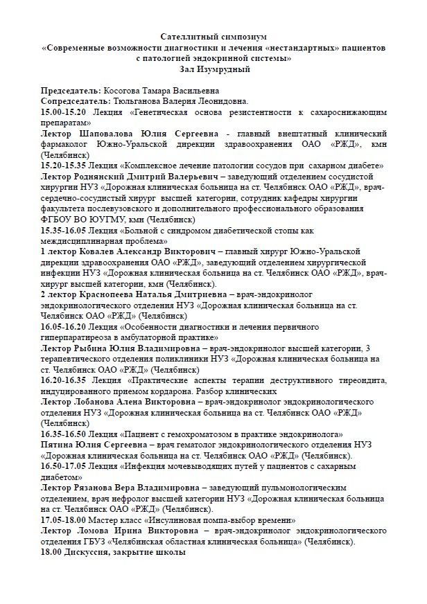 Межрегиональная школа передового опыта «Трудный пациент в практике эндокринолога». Посвящается 85-летнему юбилею НУЗ «Дорожная клиническая больница на ст. Челябинск ОАО «РЖД» |