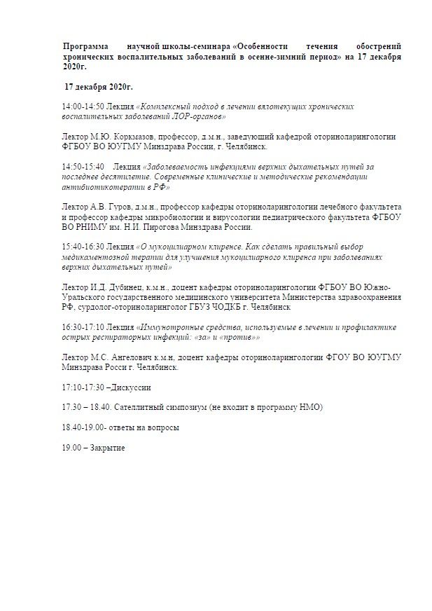 Научная школа-семинар «Особенности течения обострений хронических воспалительных заболеваний в осенне-зимний период». |