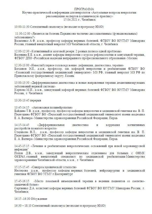Научно-практическая конференция «Актуальные вопросы неврологии: рекомендации экспертов в клиническую практику» для неврологов, терапевтов, врачей общей практики Челябинска и Челябинской области |