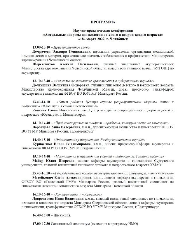 Научно-практическая конференция «Актуальные вопросы гинекологии детского и подросткового возраста» |