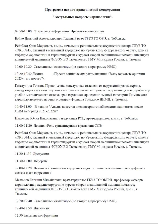 Научно-практическая конференция: «Актуальные вопросы кардиологии» Дата проведегия: 9 августа 2024 г. Иесто проведения: г. Тобольск, ул. Ленская, 35, ГК «Георгиевская» Сателлитный симпозиум (не входит в программу НМО)