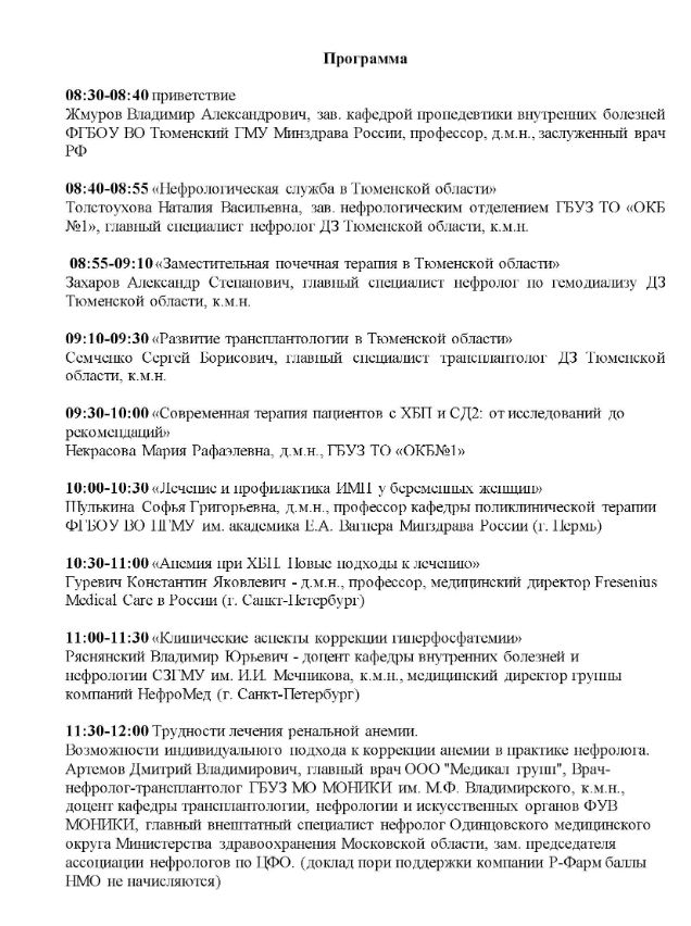 Научно-практическая конференция «Актуальные вопросы нефрологии» Дата проведения: 27 марта 2025 г. Место проведения: г. Тюмень, ул. Советская, 20, отель Евразия, конференц-зал