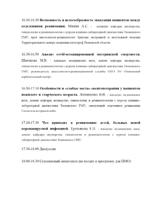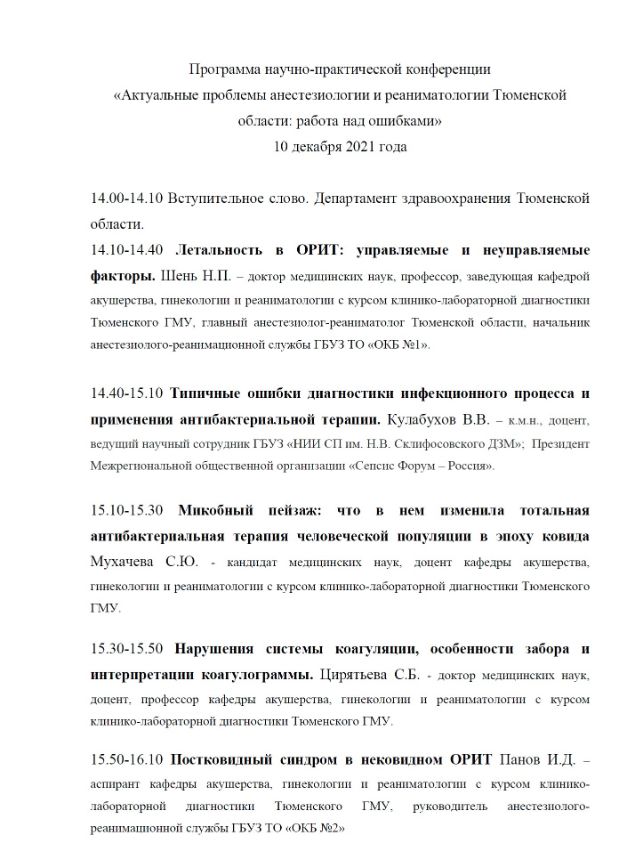 Научно-практическая конференция «Актуальные проблемы анестезиологии и реаниматологии Тюменской области: работа над ошибками» |