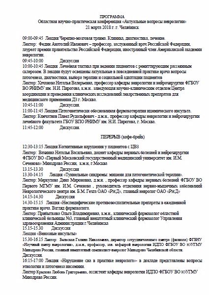 Областная научно-практическая конференция «Актуальные вопросы неврологии» Дата проведения: 21 марта 2018 года Масто проведения: г. Челябинск Отель Парк-Сити ул. Лесопарковая, 6