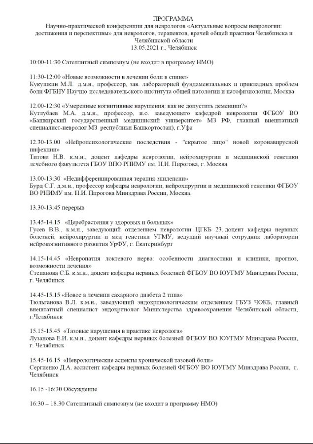 Научно-практическая конференция «Актуальные вопросы неврологии: достижения и перспективы» |