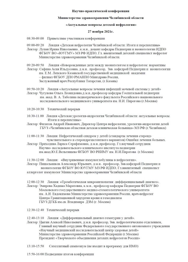 Научно-практическая конференция «Актуальные вопросы детской нефрологии» |