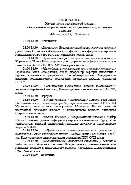 Научно-практическая конференция «Актуальные вопросы гинекологии детского и подросткового возраста» Дата проведения: 13 марта 2019 г. Место проведения: г. Челябинск, ул.Лесопарковая, 6, Отель «Парк сити»