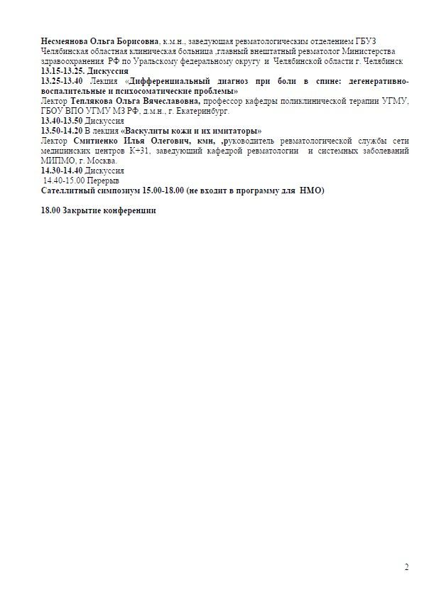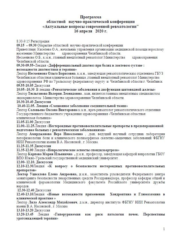Научно-практическая конференция «Актуальные вопросы современной ревматологии» Дата проведения: 16 апреля 2020 г. Место проведения: г. Челябинск, ул. Воровского, 70, конференц-зал ГБУЗ «ЧОКБ»