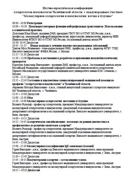 Научно-практическая конференция аллергологов-иммунологов Челябинской области с международным участием "Молекулярная аллергология и иммунология: взгляд в будущее" |