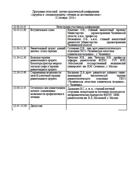 Научно-практическая конференция «Артриты и спондилоартриты –лечение до достижения цели» |