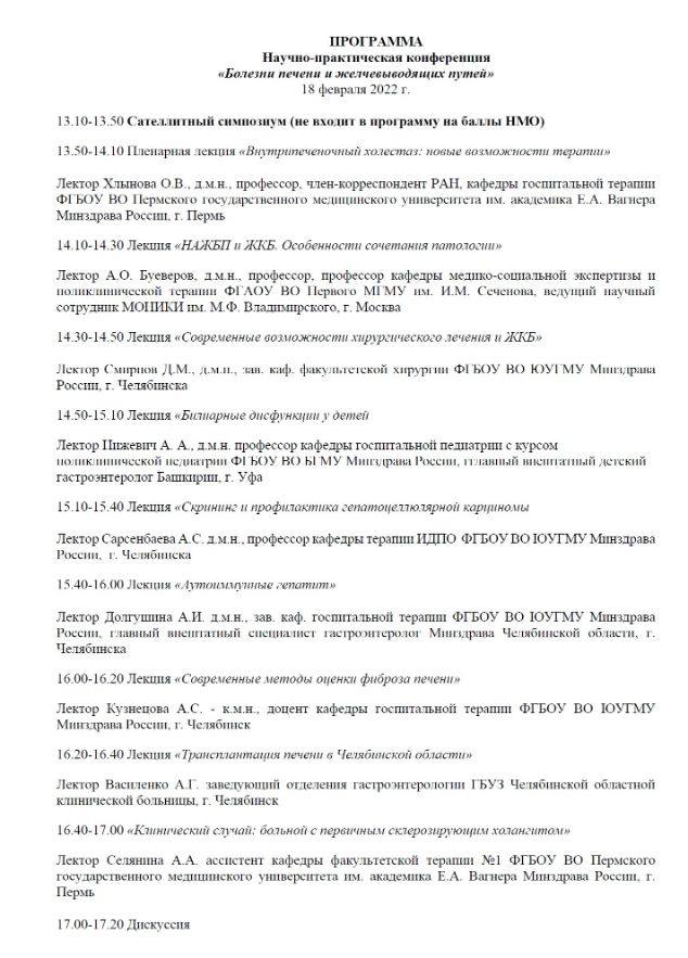 Научно-практическая конференция «Болезни печени и желчевыводящих путей» |