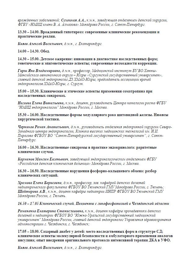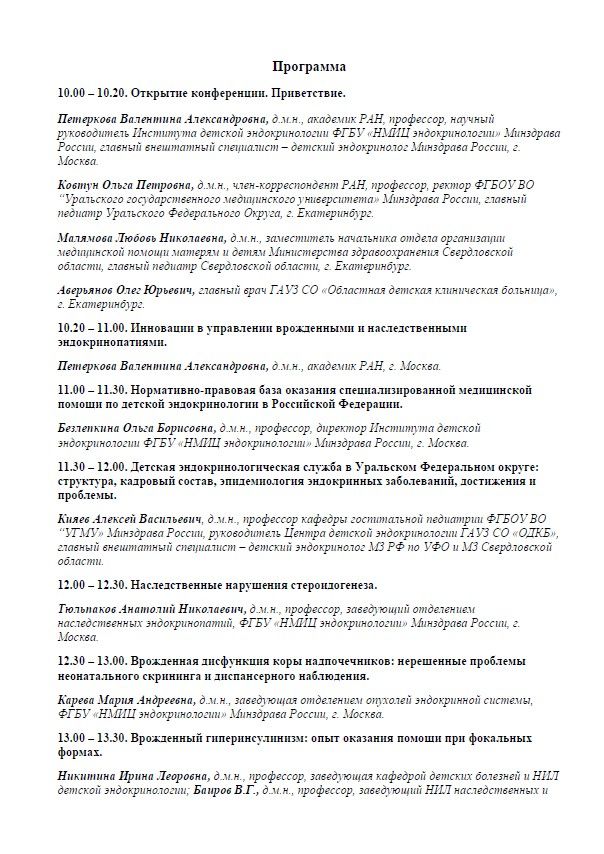 Научно-практическая конференция детских эндокринологов Уральского Федерального Округа «Инновации в управлении врожденными и наследственными эндокринопатиями» |