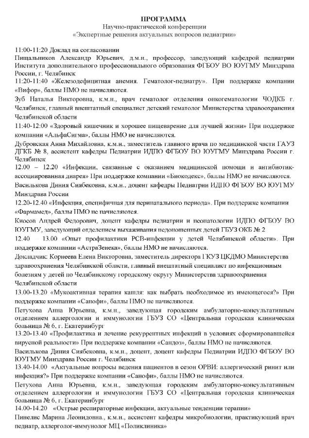 Научно-практическая конференция «Экспертные решения актуальных вопросов педиатрии» Дата проведения: 30 ноября 2024 г. Место проведения: г. Челябинск, ул. Лесопарковая, 6, отель "ПаркСити"