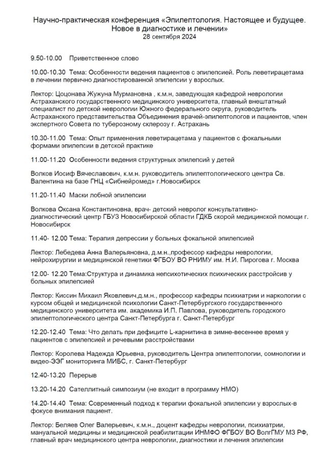 Научно-практическая конференция «Эпилептология. Настоящее и будущее. Новое в диагностике и лечении» |