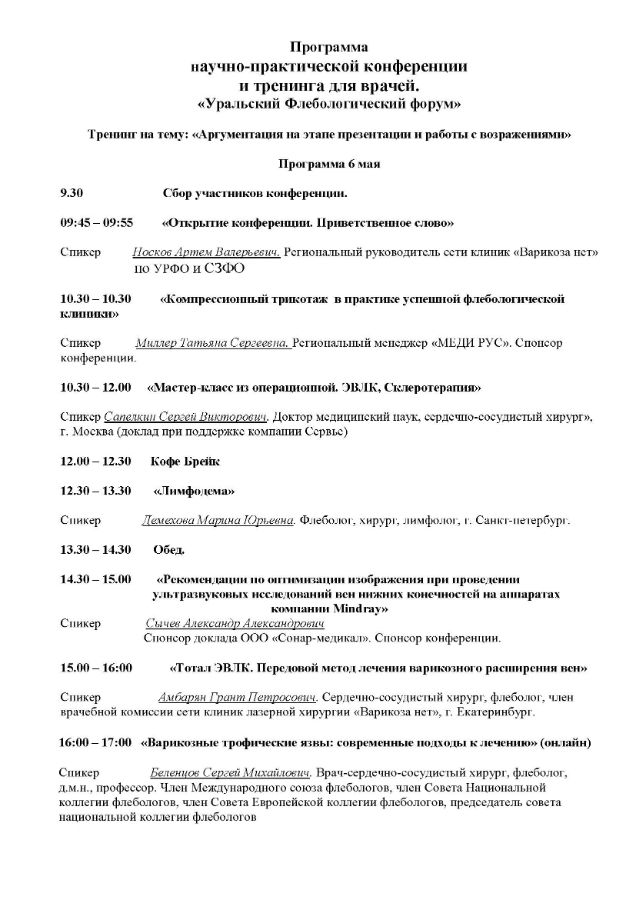 Научно-практическая конференция и тренинг для врачей. «Уральский Флебологический форум» |