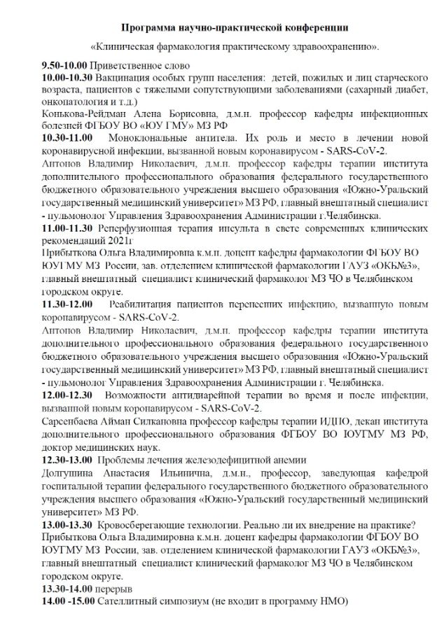 Научно-практическая конференция «Клиническая фармакология практическому здравоохранению» |